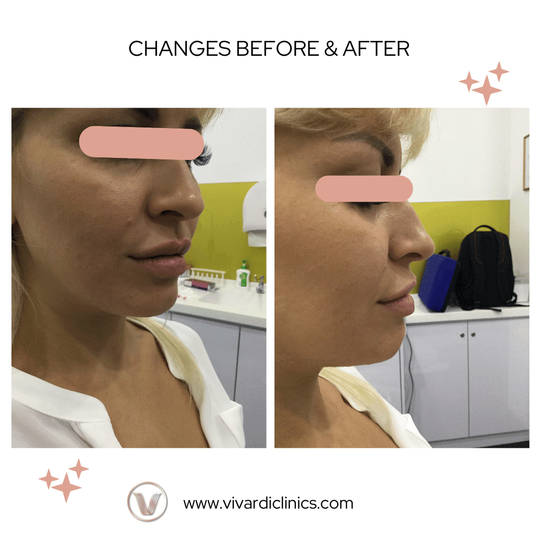 Results are visible immediately after the injections. Mild swelling or bruising may be present for one to two days. The filler softens and settles naturally within a couple of weeks. Final results are usually seen at around two weeks once the product has fully integrated with the skin.